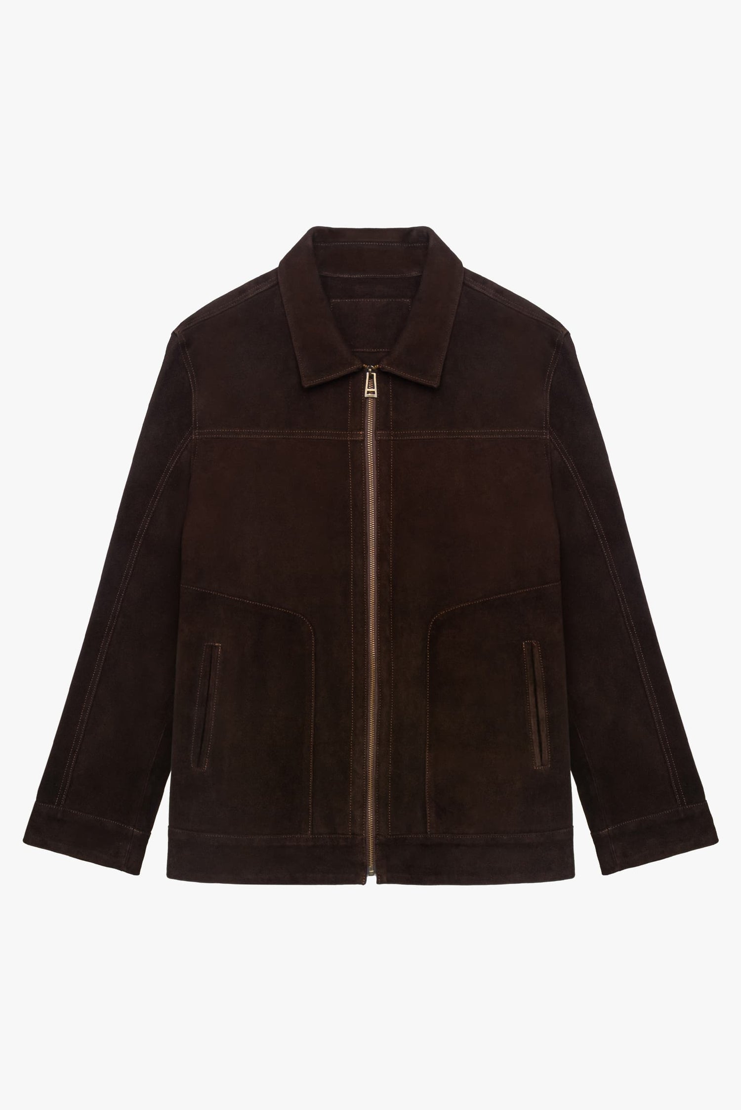 Está confeccionada en piel de borrego 100% genuina con acabado ante suave al tacto, ofreciendo una textura natural y duradera.
