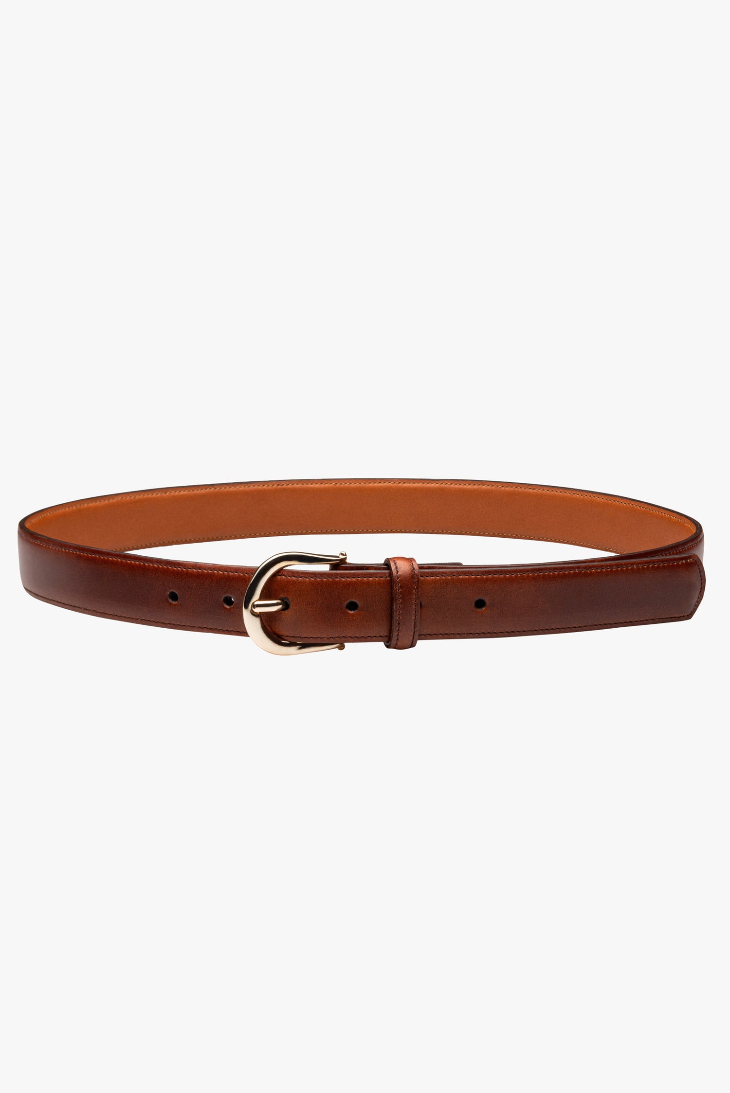 El interior está forrado con piel de res natural, suave y resistente, pensado para durar sin perder comodidad. Su hebilla metálica en tono oro añade un detalle elegante que realza su estética sin ser excesivo. Disponible en tallas S (80 cm), M (85 cm) y L (90 cm), se ajusta con facilidad a distintos estilos y siluetas.